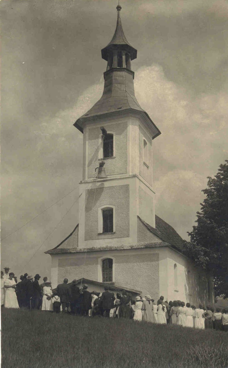Malá kaple byla údajně na místě dnešního kostela postavena již v roce 1611. O výstavbu nové barokní kaple se v roce 1688 zasloužil tehdejší obecní rychtář Nikolaus Schliemann. Na konci 18. století získal interiér klasicistní podobu. Velká přestavba proběhla v letech 1878 - 1887. Došlo k prodloužení kostela o jednu třetinu, byla postavena věž a do ní umístěny 3 zvony. Největší zvon nesl jméno Petr a Pavel, prostřední byl věnován obětem války a nejmenší dostal jméno Marie. O rok později byla přistavěna sakristie a pořízen i čtvrtý zvon, umíráček, který daroval místní mlynář Anton Baldermann. Kromě umíráčku však všechny zvony padly za oběť rekvizici během první světové války. Z nedávné minulosti nelze opomenout opravu hřbitovní zdi v roce 2001 a renovaci střechy.